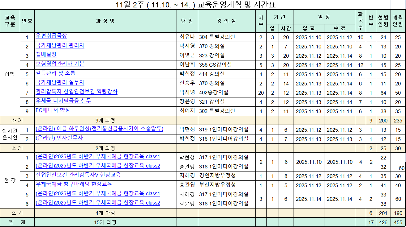 2025.11.10.(월)~11.14.(금) 교육시간표입니다.